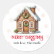 Give your thanks for a fun gingerbread house decorating Christmas, holiday party or include on greetings. A decorated gingerbread house is surrounded by a snowflake background. Perfect for a gingerbread house decorating party, cookie exchange, Christmas party, holiday party, or Christmas-time birthday party. Great as favours, envelope seals, or as a simple thank you sticker. Available with matching products.