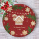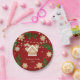 Gingerbread house christmas holiday paper plate with festive red and green design featuring gingerbread stars, gingerbread house, pine branches. Ideal for festive celebrations. Place your own family name or someone else's or delete the text if you want it more simpel. Matching items in my store UnuqieDesigns.