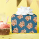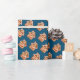 Gingerbread house cookie pattern Christmas Wrapping Paper. Custom colour gift wrap rolls for friends and family. Cute winter holiday design with ginger bread sweets. Cute drawing of brown ginger house cookie with coloured candies. Blue background.