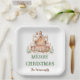Festive Christmas party plate featuring a gingerbread house. Perfect for a Gingerbread House Decorating Party. The words can be changed to suit your own details or requirements