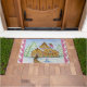 A cute gingerbread house decorates this festive doormat. The design is from original art.