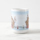 A cute gingerbread house with ice skating animals is featured on this winter theme coffee mug.