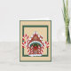 Adorable gingerbread house with candy canes on a cream background with a green border is sure to strike a nostalgic note in every heart