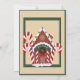 Adorable gingerbread house with candy canes on a cream background with a green border is sure to strike a nostalgic note in every heart