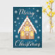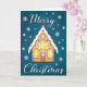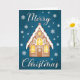 A holiday greeting card featuring a beautiful gingerbread house illustration along with the words Merry Christmas on the front with a customisable message on the inside.
