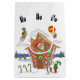 This Christmas gift bag features a colourful, fun , unique comic illustration of Santa in a gingerbread house with elves doing a variety of activities such as riding a rocket, a hot air balloon, and Ice skating. Candy canes line the walk leading to the candy covered gingerbread house. Original artwork. Copyright Leah Wiedemer