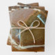 Recall the delights of making the holiday special by baking gingerbread. Close up photograph of a tiny gingerbread house in a group. House is not yet decorated with candies and frosted sugar icing. Three identical sheets, delicious gingerbread house closeup. This wrapping paper adds a touch of homemade to your gifts.