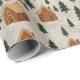 Cozy winter wrapping paper featuring a repeating pattern of charming gingerbread houses and evergreen trees on a soft, textured background.