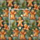 Gingerbread man cookies and stars watercolor art fabric