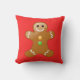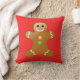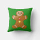 Gingerbread man with orange and green gumdrop button on red on one side and a gingerbread man with red and yellow button on green on the other side.