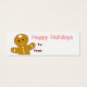 Happy Holidays gift tags with a smiling gingerbread man cookie decoration.