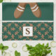Gingerbread Man Green Monogram Merry Christmas Tea Towel