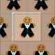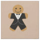Fabric of a smiling gingerbread man in a tux (background colour is changeable)