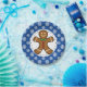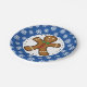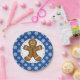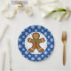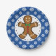 Gingerbread Man on Blue White Snowflakes Pattern Paper Plate