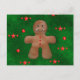 A very cute Christmas image of a pattern of gingerbread men on a green (faux) velvet background, surrounded by red Christmas stars.
