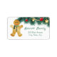 Christmas Return address label with Cute gingerbread man, branch of pine decorated with baubles and golden stars.