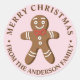 Add a sweet and festive touch to your holiday gifts and cards with this Pink Gingerbread Man Merry Christmas Classic Round Sticker. Featuring a cheerful gingerbread man design and a personalised "Merry Christmas" message, these stickers are perfect for sealing envelopes, decorating gift packages, or adding a fun holiday accent. Customise them with your family name for a unique, personal touch.