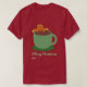 A cute gingerbread man relaxing in a hot chocolate cocoa hot tub mug fun cookie character Christmas cartoon fun baking around the holidays customisable add a saying merry Xmas happy holidays motto fun season’s greetings extra merry ginger cookie statement fun t-shirt. Get a funny holiday tee today.