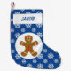 Gingerbread Man Snowflakes Personalised Blue Small Christmas Stocking