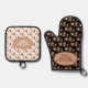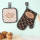 Stay safe in the kitchen for your baking and cooking this holiday season with on an oven mitt and pot holder featuring a Christmas themed gingerbread man, star, and candy cane cookie pattern with template text. Personalise the template text or edit using the design tool to select a font style, size, and colour you prefer.