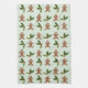 Gingerbread men and holly pattern on festive kitchen towel with green trimming.