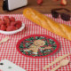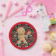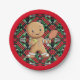 a round paper plate that’s the life of the Christmas party! 🎄 Imagine a festive background with all the holiday trimmings—twinkling lights, snowflakes, and candy canes. But wait, it gets better! Right in the middle, there’s a gingerbread man, icing and all, holding a pickleball paddle, ready to serve up some holiday cheer. This plate is perfect for your Christmas feast, whether you’re serving up cookies, cake, or even a holiday ham. It’s not just a plate; it’s a conversation starter that’ll have everyone at the table smiling. 🎅🍪🏓