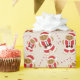 Christmas wrapping paper with a smiling gingerbread Santa and candy cane pattern.