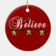 A string of gingerbread boys and text that reads "Believe" on a keepsake holiday ornament you can personalise with the current year.