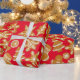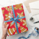 A Unique Red Wrapping Paper Patterned In Different Shaped Gingerbread Sugar Cookies