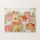 Look at these charming gingerbread houses all together in a cute Christmas village. So colourful, cute, and old-fashioned. They are joyful as they help us keep in touch with old-fashioned winter holiday celebrations. The scene originated as vintage, watercolor art. There is such variety in the scene that it makes for a fun gift for the friend or family member who loves jigsaw puzzles.