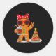 Gingerbread Women Drinking Coffee Christmas Tree C Classic Round Sticker