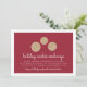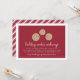 Invite guests to swap favourite holiday cookies with our festive Gingersnap holiday cookie exchange invitation. Design features a cranberry red background with a white border and three freshly baked cookie illustrations at the top. Personalise with your Christmas cookie swap information in a mix of modern script and block lettering. Invitations reverse to festive red and white diagonal stripes.