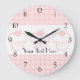 Clock with Numbers has a minimalist pink cupcake design with gingham.