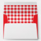 Personalise your mailing with printed envelopes. This apple red envelope is the perfect match for the collection for "A little Apple is on the way". But with a simple red and white colouring with red gingham on the inside, the envelope becomes more versatile for any occasion. Start editing this simple template for your return address on the back flap, to make mailing your invites easier! Start editing now!