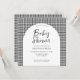 Create your own personalised baby shower invitation featuring simple minimal design and black and white plaid pattern design.