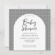 Gingham Black White Chequered Plaid Baby Shower Invitation