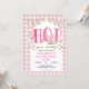 Gingham Boho Floral Hop on over Bunny Birthday Invitaiton, Blush Pink Coquette Bow Bunny Kids Birthday Invite, Editable Easter Theme Girl Birthday Invite