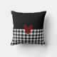 Ms. Monogram's gingham pillow design features your family name popular black and white buffalo check pattern set on a black background. The accents are red and black buffalo plaid. The bottom half of the pillow feature matching black and white buffalo check / gingham pattern and the top half is black. With all that red and green around the house at the holidays, surely this black and white pillow will stand out! #BuffaloPlaid #Gingham #BuffaloCheck