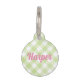 The Gingham Pet ID Tag showcases a timeless pattern that's as stylish as it is classic. The light green and white chequered design is highlighted by a prominently displayed name in a soft, complementary pink hue. It's a refreshing and lovely choice for the pet that carries a touch of country charm wherever they go.