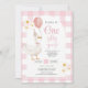 One Silly Goose Birthday Invite, PINK Gingham First Birthday Invitation