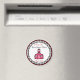 A magnet for teachers featuring the logo of The Pink Schoolhouse inside a circle shaped black gingham frame with red trim. Black and red text reads "Pre-K Teachers have class."