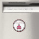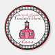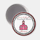 A magnet for teachers featuring the logo of The Pink Schoolhouse inside a circle shaped black gingham frame with red trim. Black and red text reads "Second Grade Teachers have class."