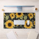 The striking sunflower pattern stands out beautifully against a black and grey gingham backdrop