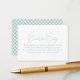Designed to coordinate with the Lea Delaveris Design Oh Baby teal gingham baby shower collection, this invitation insert is perfect for special requests for baby shower guests. The sweet light teal script "books for baby" text can be edited as can the request text below it. Works for a diaper raffle too! It also features a teal gingham pattern on the back to coordinate with the invitations and party supplies and decor. Find more matching pieces in the collection.