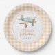Gingham Time Flies Aeroplane First Birthday Paper Plate