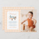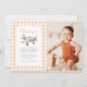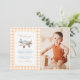 Gingham Time Flies Aeroplane First Birthday Photo Thank You Card