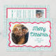 Gingham Wavy Pink Green Christmas Custom 3 Photo Holiday Card