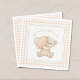 Add a sweet and cozy touch to your baby shower table with these We Can Bearly Wait baby shower napkins. Featuring an adorable teddy bear holding a heart on a soft beige gingham background, these napkins are perfect for gender-neutral baby showers, classic neutral themes, and elegant celebrations. Ideal for dessert tables, drink stations, and coordinated baby shower decor.
