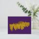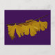 Purple postcard with photo of yellow leaves of ginkgo biloba tree