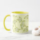 Ginkgo leaves spill across the mug against a soft yellow. A great way to have your morning coffee.